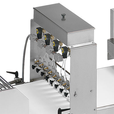 - Ürün dozajlamasını kontrol etmek için volumetrik pnömatik dozajlama ünitesi. Bu sayede kalın dolgulu ve büyük parçalı kalın ürünleri üretme imkanı